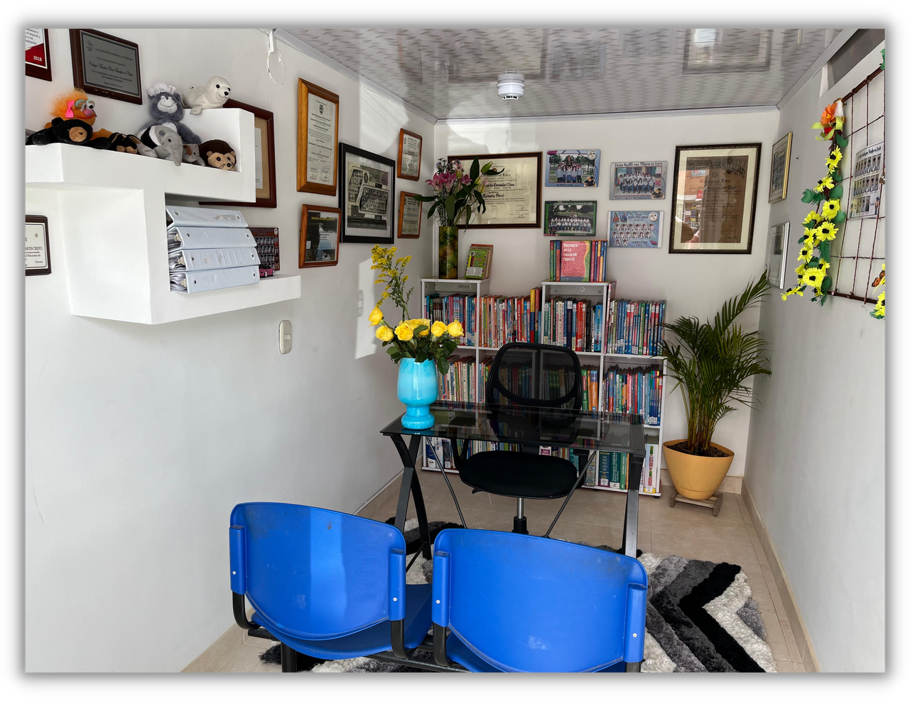La oficina cuenta con espacio para hasta tres personas, lo que la hace ideal para reuniones, trabajos individuales o sesiones de consulta.